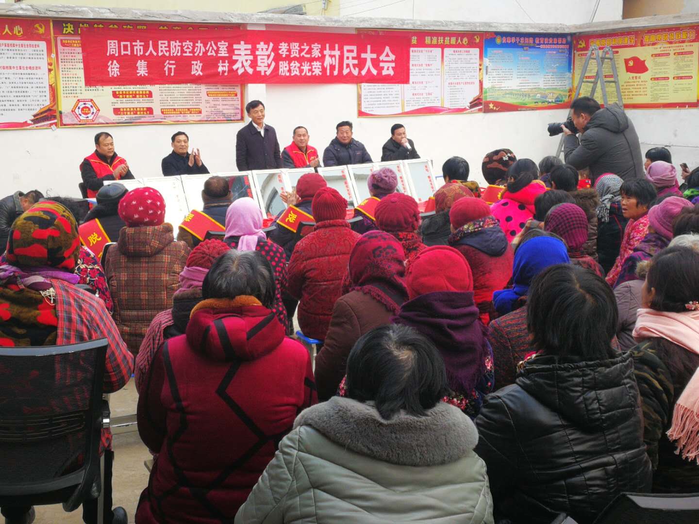 1月25日下午,寒风袭人,但对于淮阳县葛店乡徐集行政村的老百姓来说心里却是暖烘烘的。市人防办党组书记、主任胡道全带领班子成员不畏天气严寒,深入到帮扶村,与村两委共同召开全体村民大会,评选并表彰“脱贫光荣户”“孝贤之家”。同时对全村剩余4户尚未完全脱贫的困难家庭进行慰问,详细了解其生产生活情况,鼓励他们树立信心,克服困难,在村两委和驻村工作队的帮助和支持下,争取早日脱贫致富。
