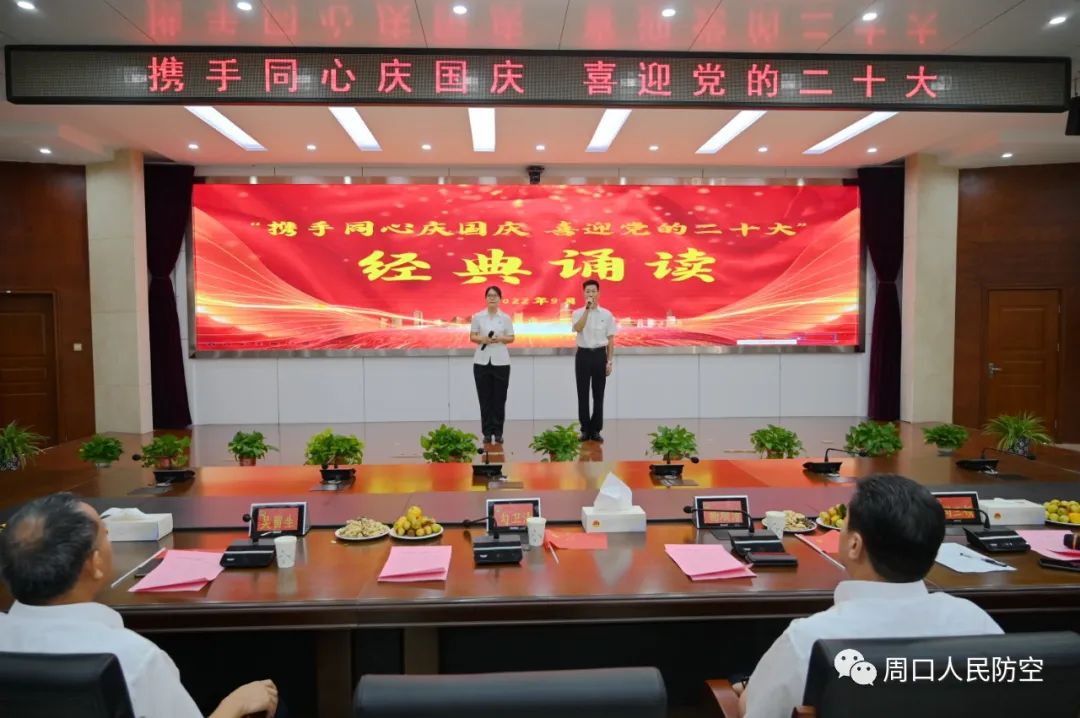 在国庆节来临之际,为进一步教育引导干部职工深刻感悟新时代党和国家事业发展伟大成就和光辉历程,检验“能力作风建设年活动”成果,积极响应“书香河南全民阅读倡议”号召,激发干部职工的读书热情,9月28日上午,周口市人防办组织开展“携手同心庆国庆·喜迎党的二十大”经典诵读活动。党组书记、主任杨顺清出席了活动,纪检监察组组长勾卫清及纪检监察组全体人员应邀参加了活动。
