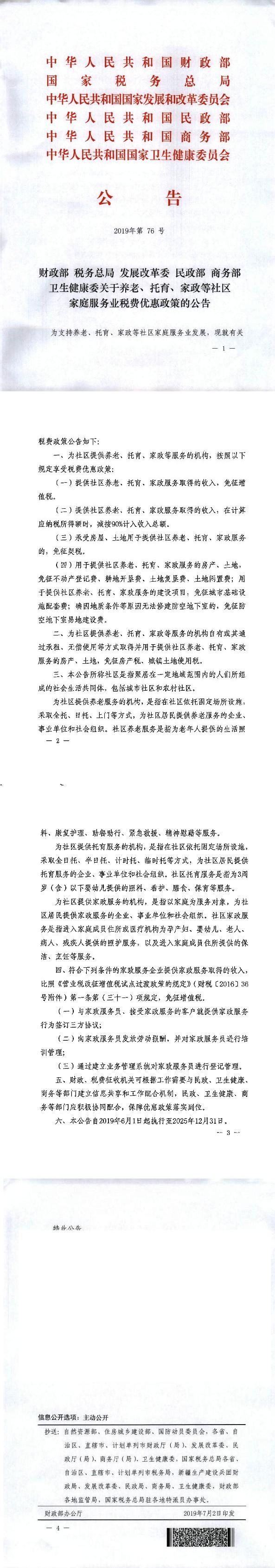 关于养老、托育、家政等社区家庭服务业税费优惠政策的公告
